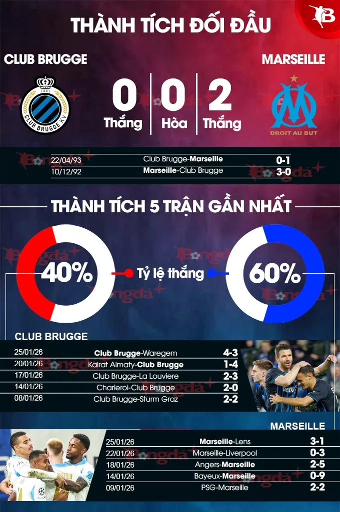 Dù phong độ trong nước của Marseille đã được cải thiện, nhưng thành tích sân khách kém cỏi tại Champions League là một điểm trừ lớn. Trong khi đó, sức mạnh sân nhà và lối chơi cởi mở của Club Brugge hứa hẹn sẽ tạo nên một trận cầu hấp dẫn, đầy kịch tính và nhiều bàn thắng.