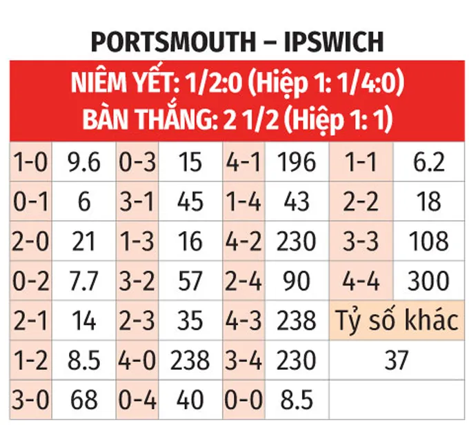 - Bàn Thắng Muộn: Đây là trận đấu có thể quyết định ở những phút cuối. 5/7 trận gần nhất của Portsmouth và 6/8 trận gần nhất của Ipswich đều chứng kiến bàn thắng được ghi từ phút 75 trở đi.