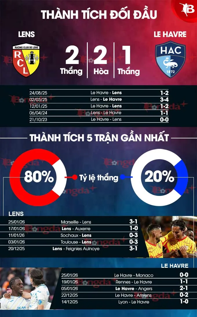 Trận đấu sớm vòng 20 Ligue 1 mang đến cho RC Lens cơ hội kép. Một chiến thắng trước Le Havre không chỉ giúp họ tạm thời vươn lên vị trí số 1 trên bảng xếp hạng mà còn là bước đệm quan trọng để gây áp lực lên nhà đương kim vô địch PSG.