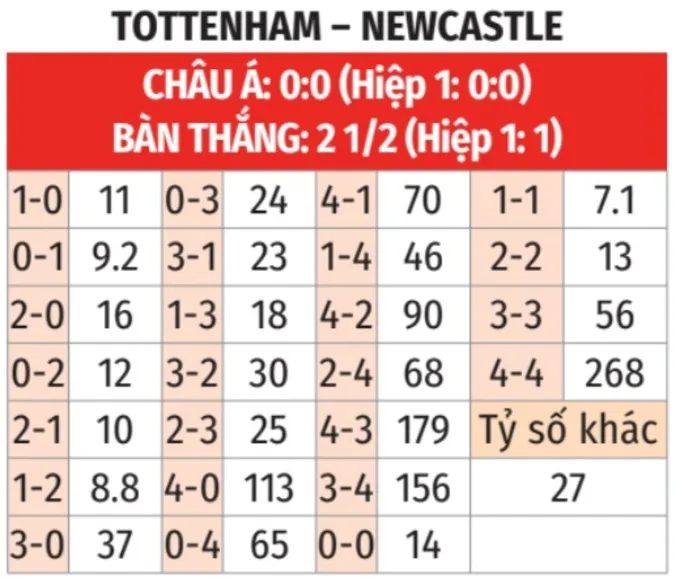 - Xu hướng chẵn: 5 trận gần của Tottenham và 4/5 trận sân khách của Newcastle kết thúc với tổng bàn thắng chẵn.